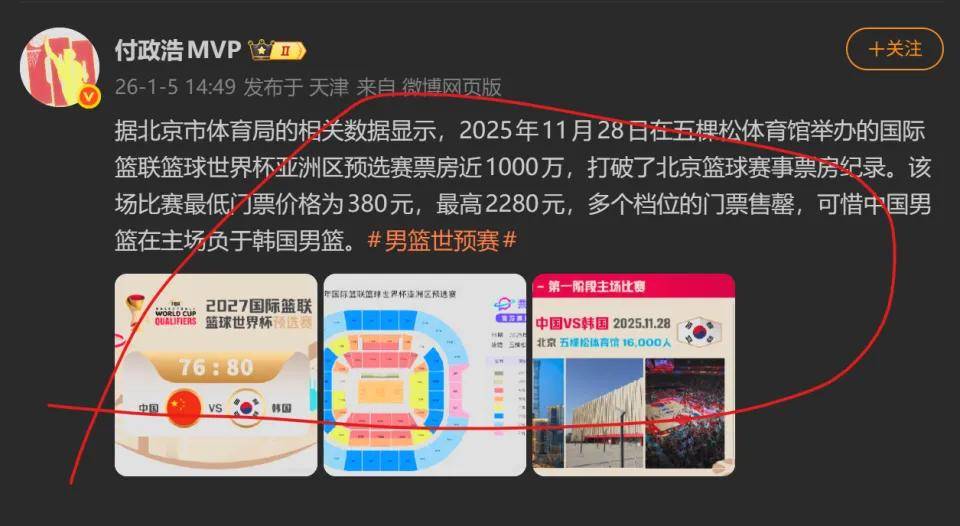 2026世界杯赛程,世界杯投注,世界杯球队阵容,世界杯预测,世界杯直播/全网最全的2026年世界杯专题报道,提供赛程时间表、球队阵容、赔率分析、投注预测与实时比分,助你掌握每一场焦点战况。震耳欲聋的讨论,在数月之后依然回响。五棵松体育馆的记分牌早已黯淡无光,但去年11月28日那场中国男篮主场迎战韩国队的世界杯预选赛,却在中国篮球界留下了难以磨灭的印记。北京市体育局的最新数据显示,这场比赛的单场票房收入逼近一千万元人民币,创造了北京篮球赛事历史单场票房的新纪录。然而,这份耀眼的数字,却像一记响亮的耳光,狠狠抽在了中国篮球的面颊上。