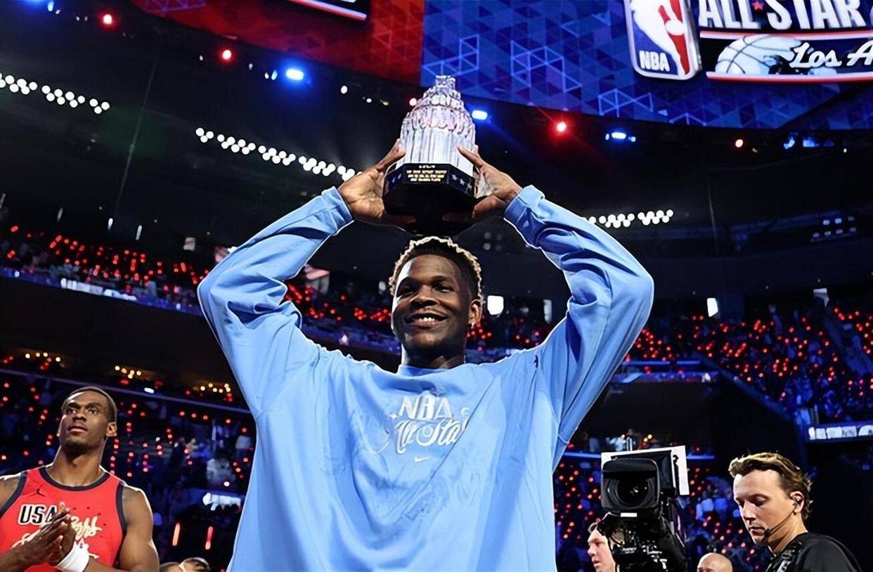 最终,冠军属于美国新星队。 当全明星MVP(AMVP)的评选结果出炉时,虽然伦纳德那震古烁今的31分为他赢得了不少选票,但大多数评委,包括占多数的媒体记者,都把票投给了安东尼·爱德华兹。 理由很直接:他带领球队赢得了冠军,并且从第一场到决赛,表现稳定而出色。 三场比赛,他22投13中,拿下32分9篮板,是球队从头到尾最可靠的箭头。 当爱德华兹举起那座以科比·布莱恩特命名的奖杯时,他笑得很灿烂。 这个结果,像是一个清晰的隐喻:个人极致的爆发固然令人震撼,但赢得最后的胜利,需要持续的输出和带领团队前行的能力。 伦纳德赢得了数据,爱德华兹赢得了比赛。