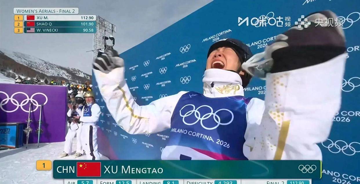 米兰决赛受暴雪影响,预赛和决赛被迫在同日进行,两场比赛相隔仅3小时。 35岁的徐梦桃要在短时间内完成两轮高强度比拼,对体能是极大考验。 决赛第二轮,她第三个出场,以65公里左右的时速俯冲,腾空至11.2米的高度完成向后翻腾三周动作。 整套动作衔接流畅,空中姿态舒展,落地稳如泰山,裁判打出112.90分的高分。 当澳大利亚选手斯科特以102.17分获得银牌时,徐梦桃锁定了金牌,成为该项目冬奥历史上首位卫冕冠军。