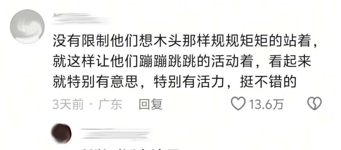 能穿着16斤玩偶服活动自如的确实不是普通人:开幕式上的大湾鸡“内胆”是来自广东武校的40名初中生,选拔时,特地考察了每个人的武术功底。“原本设计了武术动作,发现穿上玩偶服后无法实现。”负责人介绍,除了大场面动作是规定的,其他动作都是孩子们的自由发挥,“把活泼的天性展现出来”。网友看到即使是相对正式的仪式现场,每只大湾鸡都随着音乐节拍蹦蹦跳跳、舞姿自由发挥,感叹“没有限制他们规规矩矩地站着,所以看起来特别有活力。”