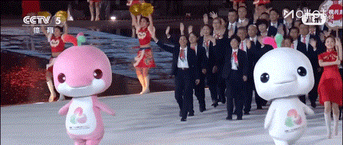 11月9日,第十五届全国运动会在广州开幕,吉祥物“大湾鸡”跟随运动队出场,成了全场最忙的角色。