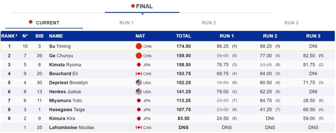 首次晋级大跳台世界杯决赛的葛春宇同样有着出色发挥。在首轮出现了落地失误后,葛春宇迅速调整状态,第二轮和第三轮分获77.00分和82.50分。特别是第